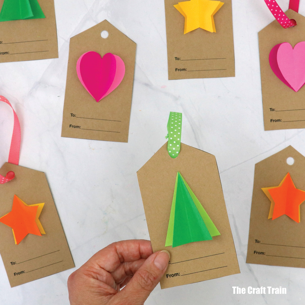 Simple, 3D Christmas shape gift tags to add a personalised touch to gifts.