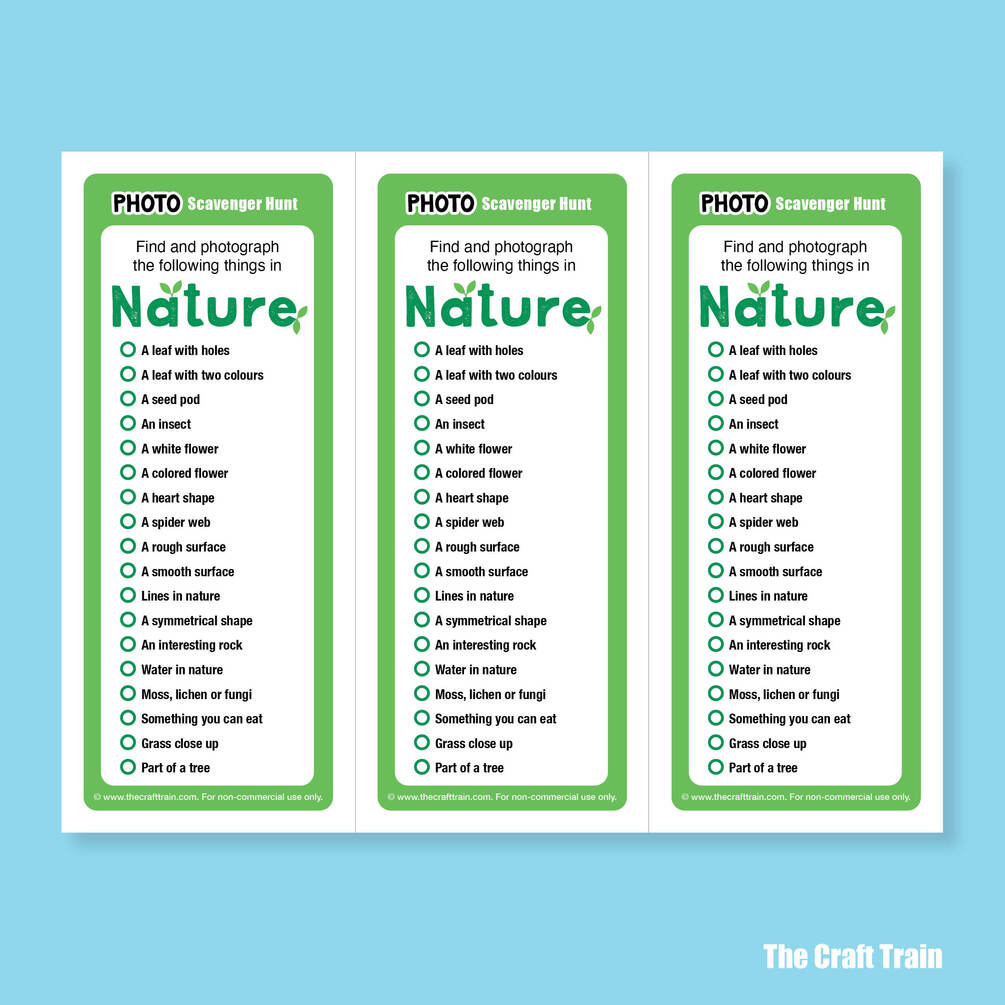More details and an example of the photo hunt prompts here: https://www.thecrafttrain.com/nature-photo-scavenger-hunt/