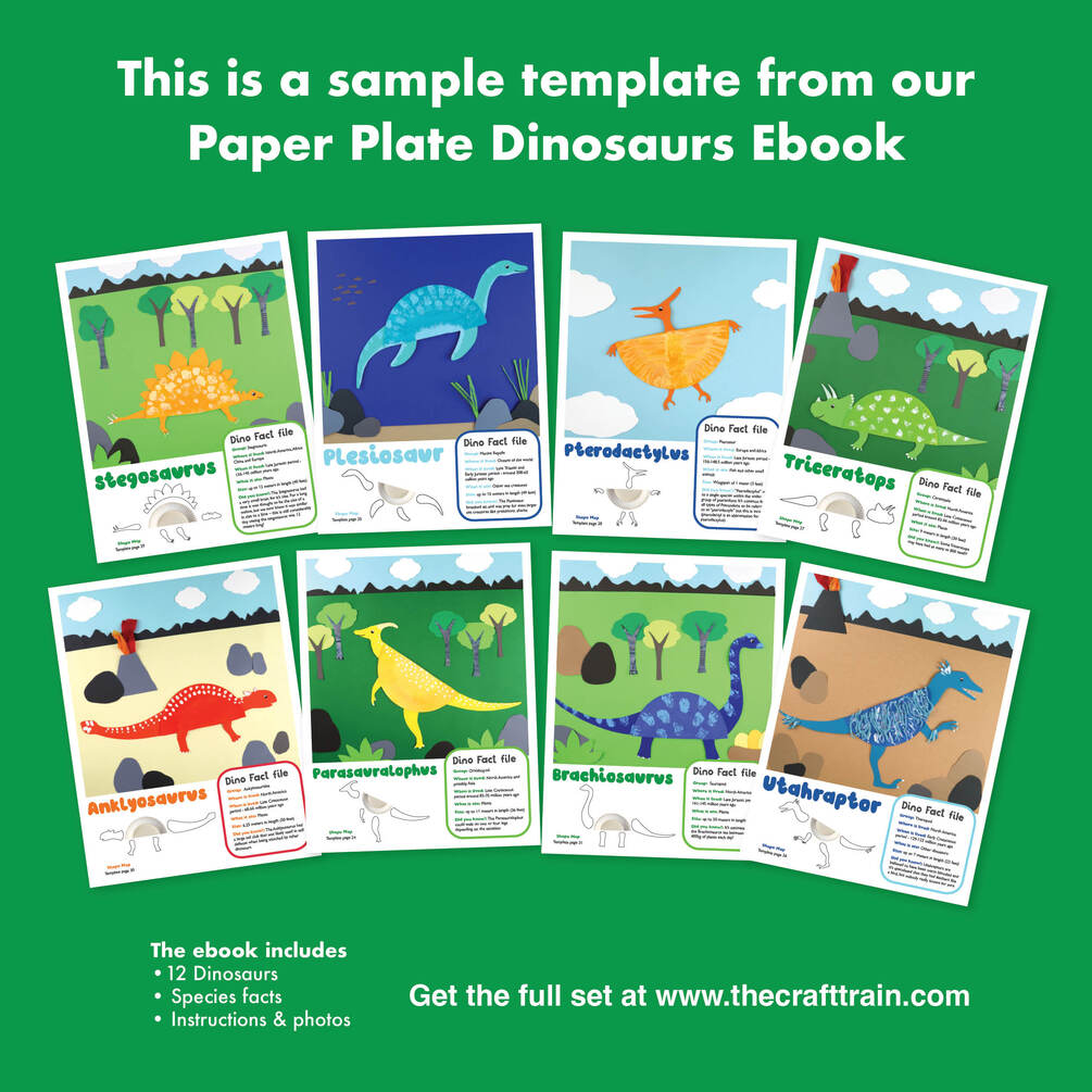 This template is a sample craft from our Paper Plate Dinosaur Ebook featuring the templates to create 12 species of Dinosaurs along with photographs, instructions and facts about each of the species.