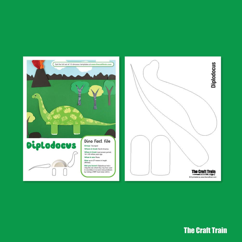 Create a Diplodocus Dinosaur from a paper plate using this template.
