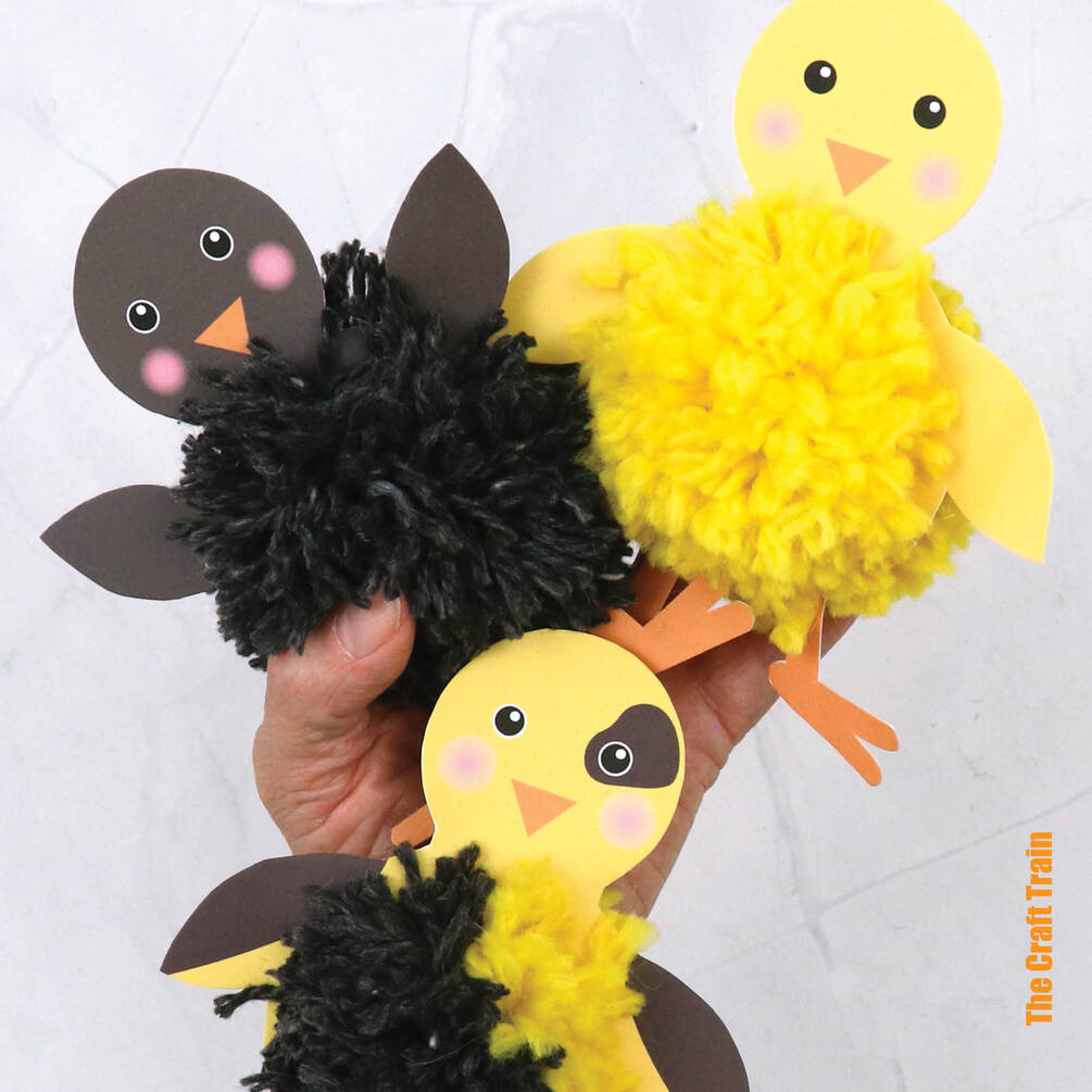 For full instructions and a video tutorial visit the blog here: https://www.thecrafttrain.com/easy-pom-pom-chicks/