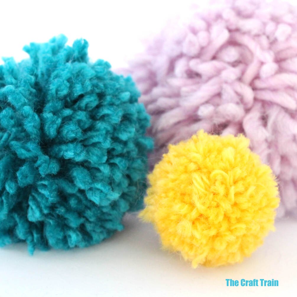 Make fluffy pom poms the easy way with a DIY pom pom maker. Three different sizes are included in this template to be traced onto recycled cardboard and turned into pom pom makers.